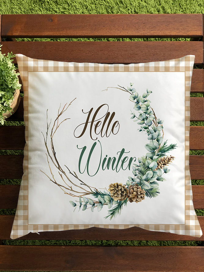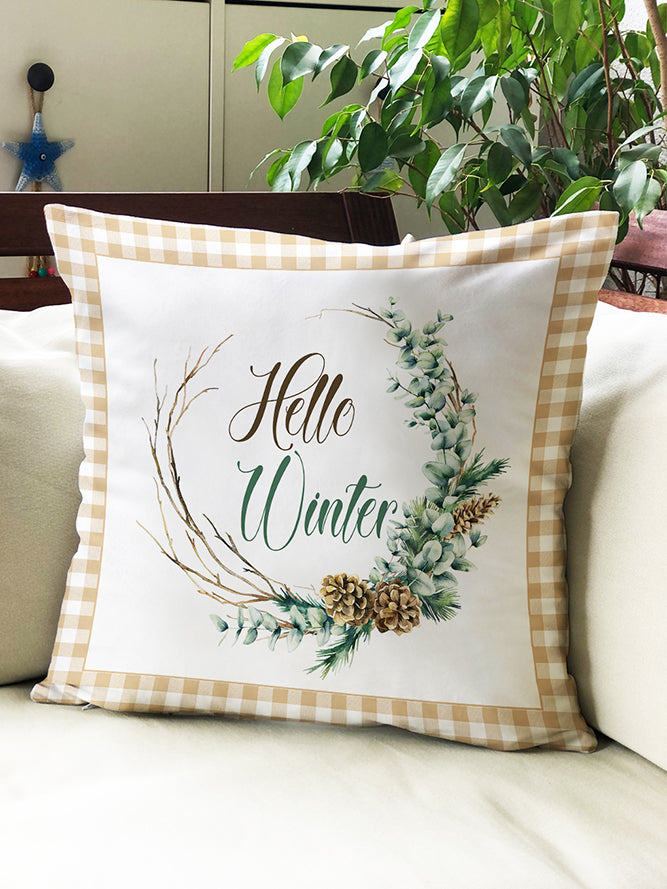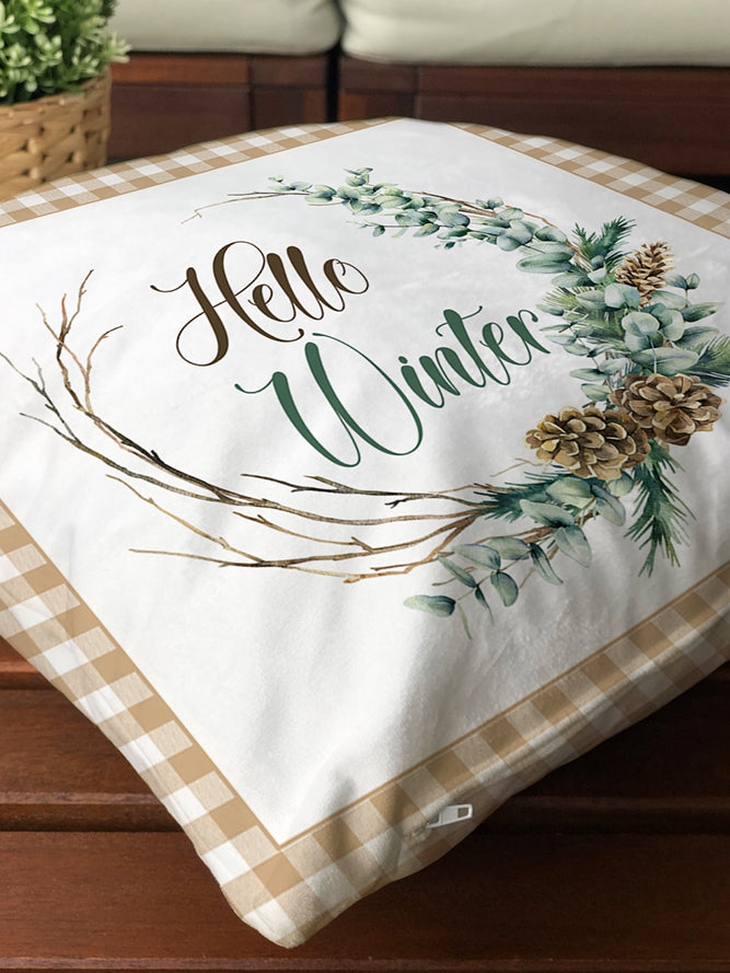 Milbay Kış Çelenk Desenli Kırlent Kılıfı