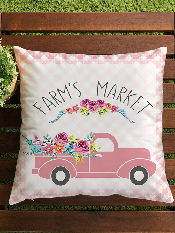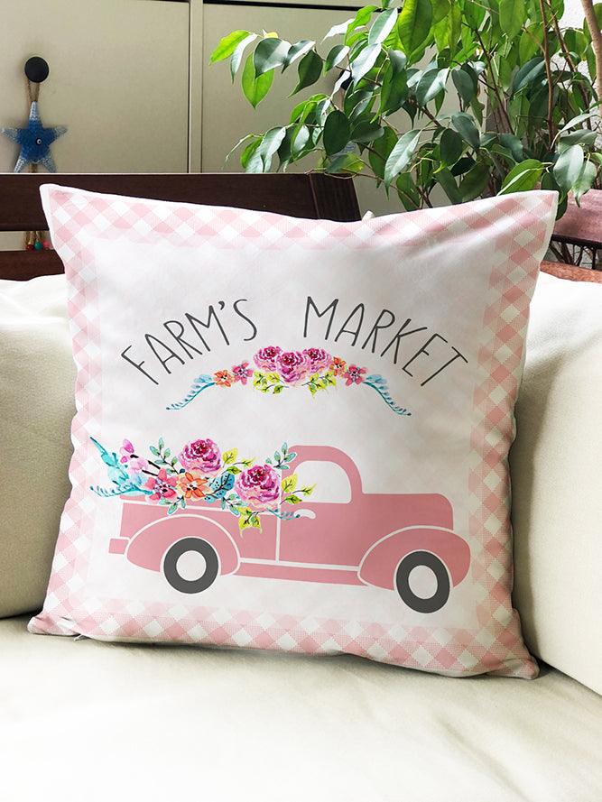 Milbay Çiçekli Vintage Araç Desenli Kırlent Kılıfı