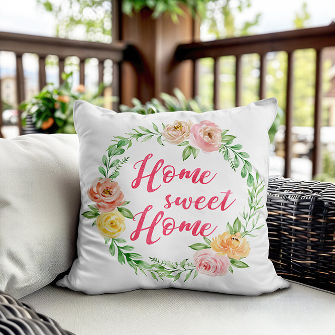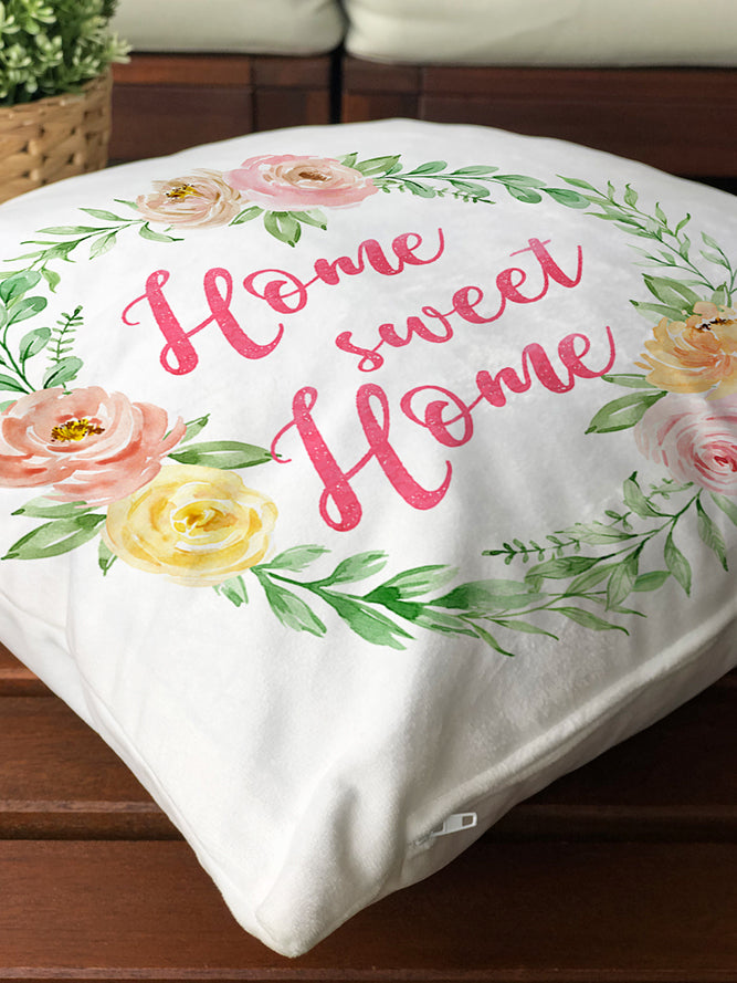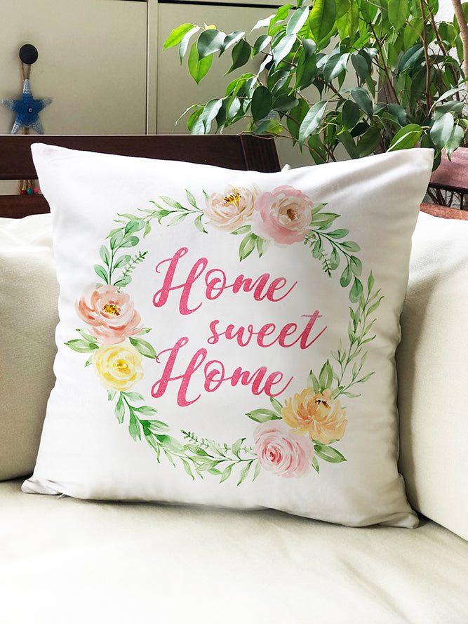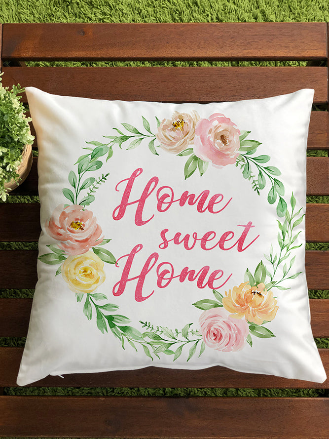 Milbay Bahar Çiçekli Ev Desenli Kırlent Kılıfı