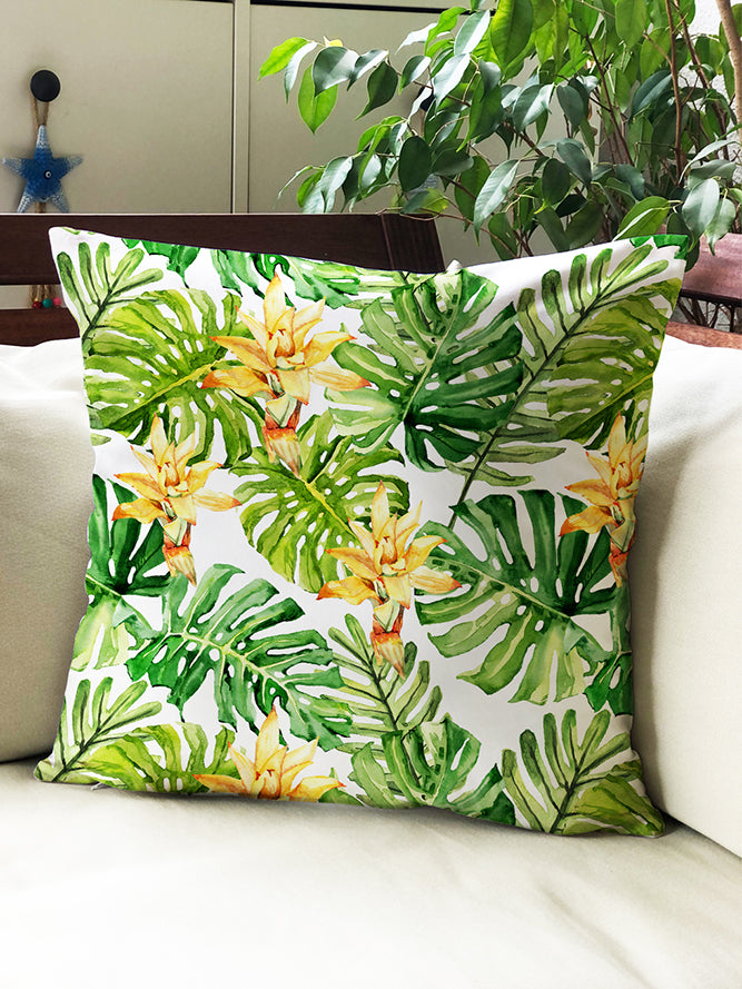 Milbay Tropikal Yeşil Çiçek Desenli Kırlent Kılıfı