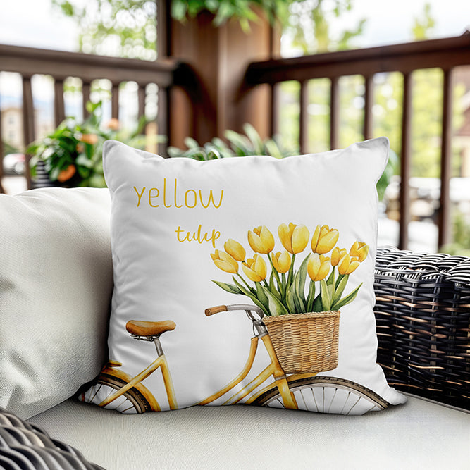 Milbay Bisiklet ve Sarı Lale Desenli Kırlent Kılıfı
