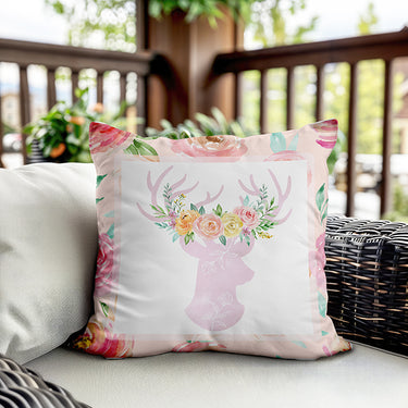 Milbay Çiçekli Geyik Desenli Kırlent Kılıfı