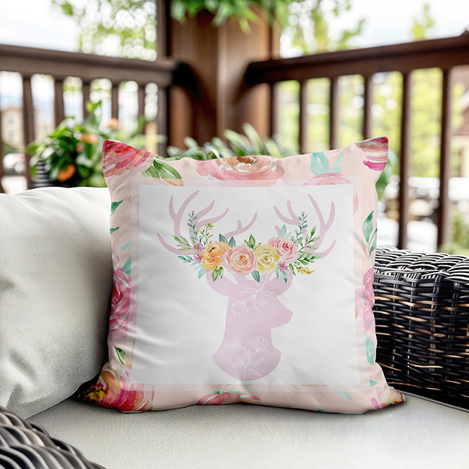 Milbay Çiçekli Geyik Desenli Kırlent Kılıfı