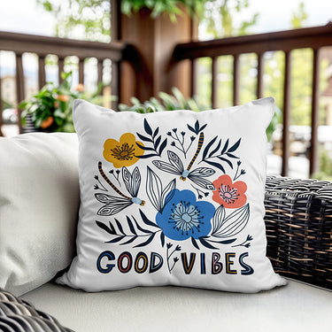 Milbay Çiçekli Good Vibes Desenli Kırlent Kılıfı
