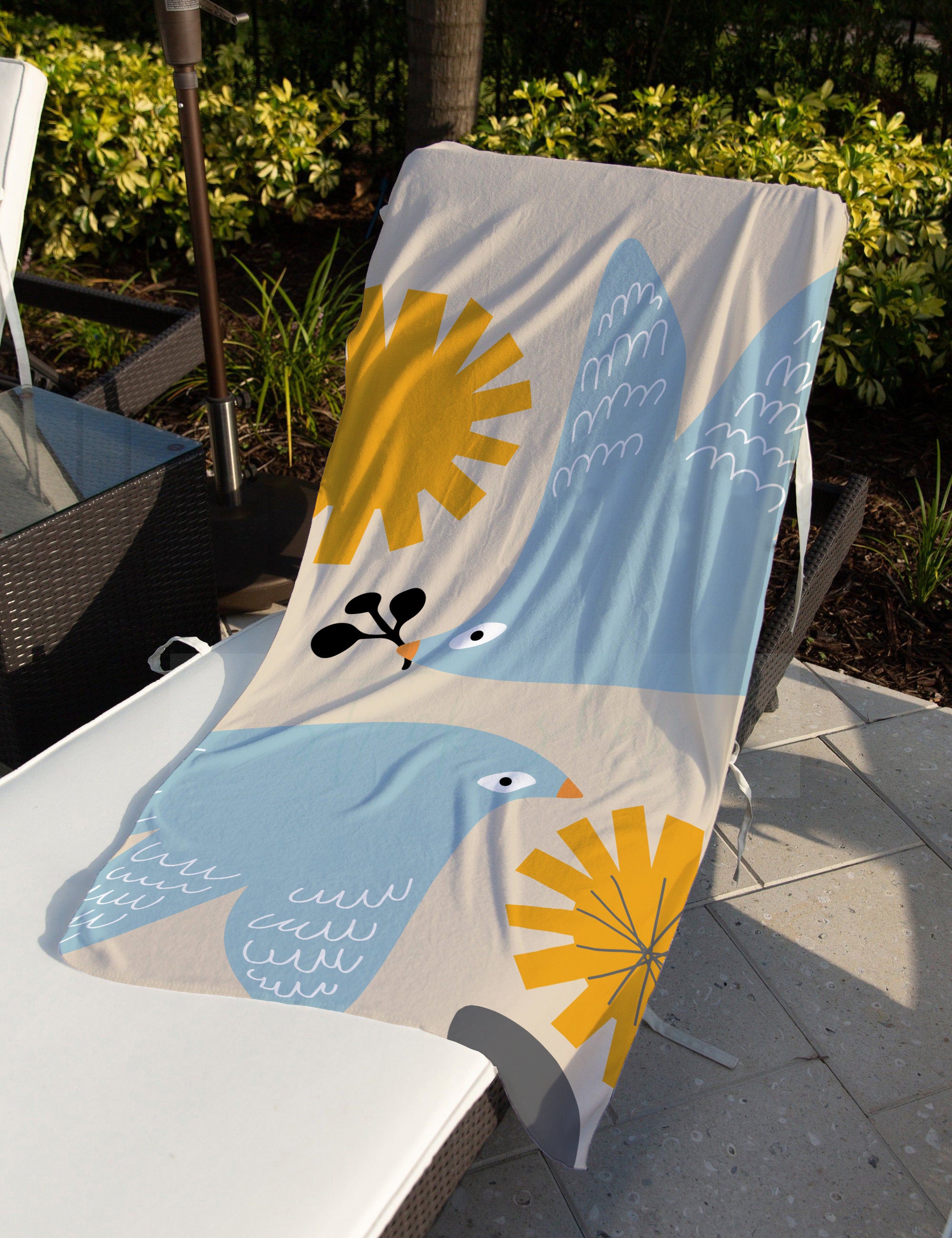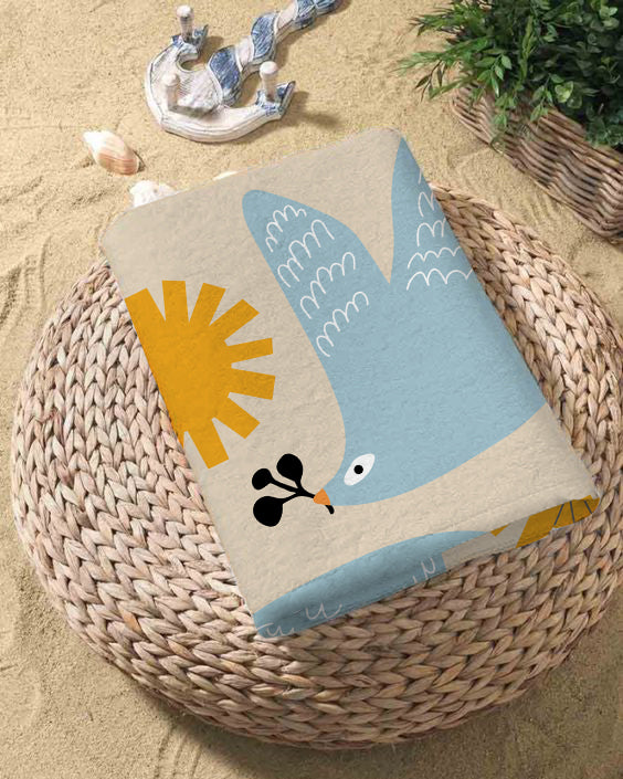 Milbay Güneşli Kuş Desenli Plaj Havlusu