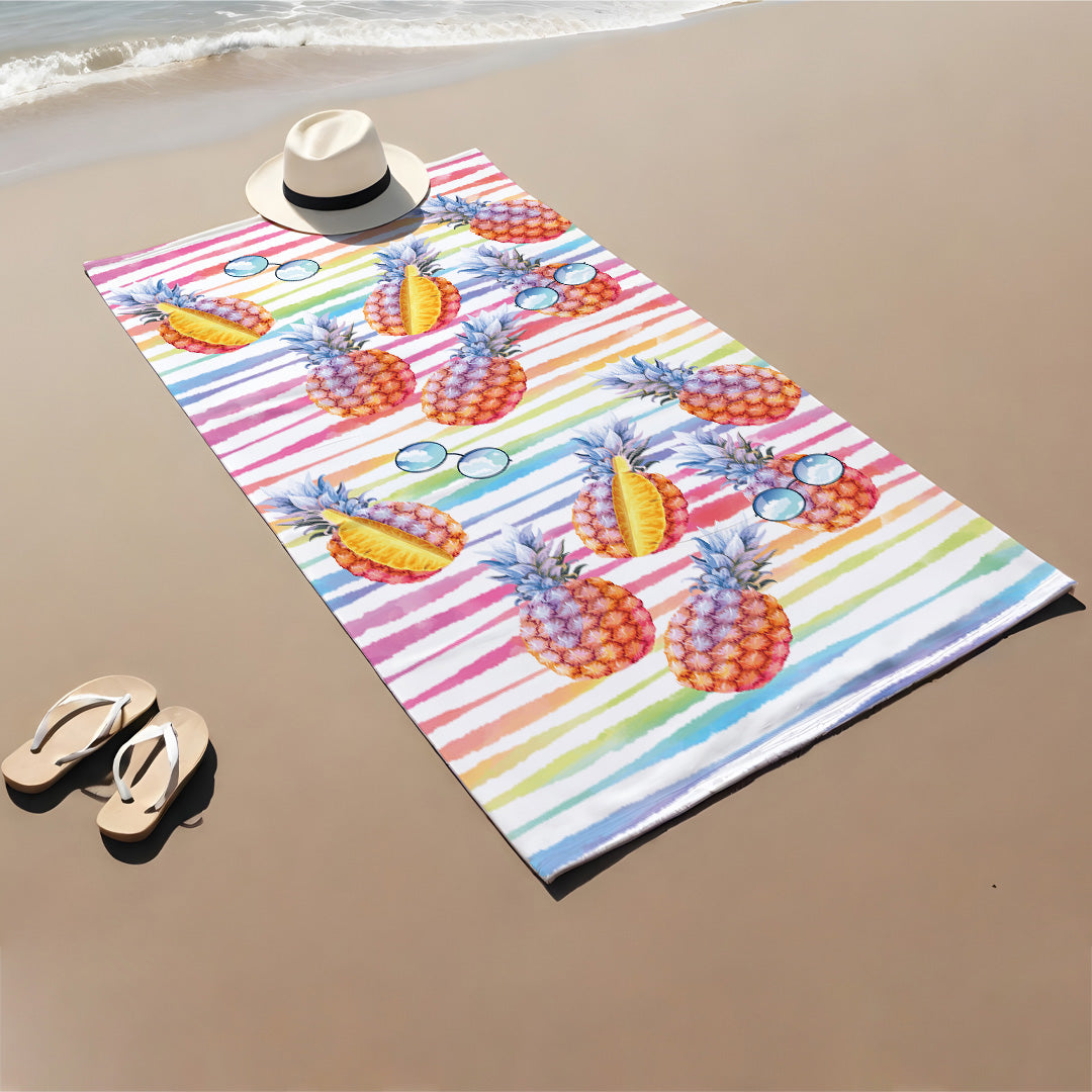 Milbay Tropikal Ananas Çizgili Plaj Havlusu