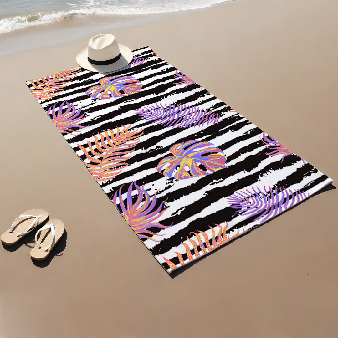 Milbay Tropikal Çizgili Dijital Desenli Plaj Havlusu