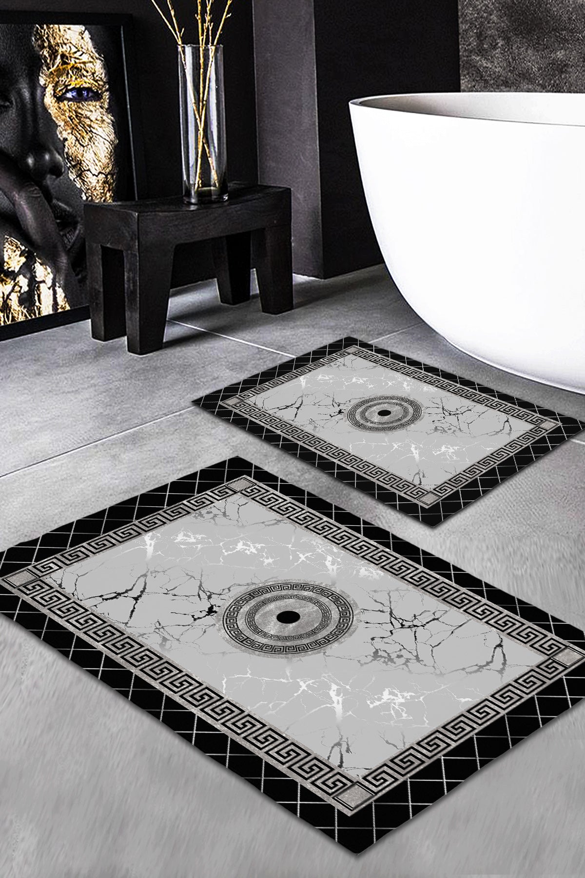Kusursuz banyo deneyimi için Milbay Mermer Şıklığı Desenli Banyo Paspas Seti sizleri bekliyor! 🛀✨