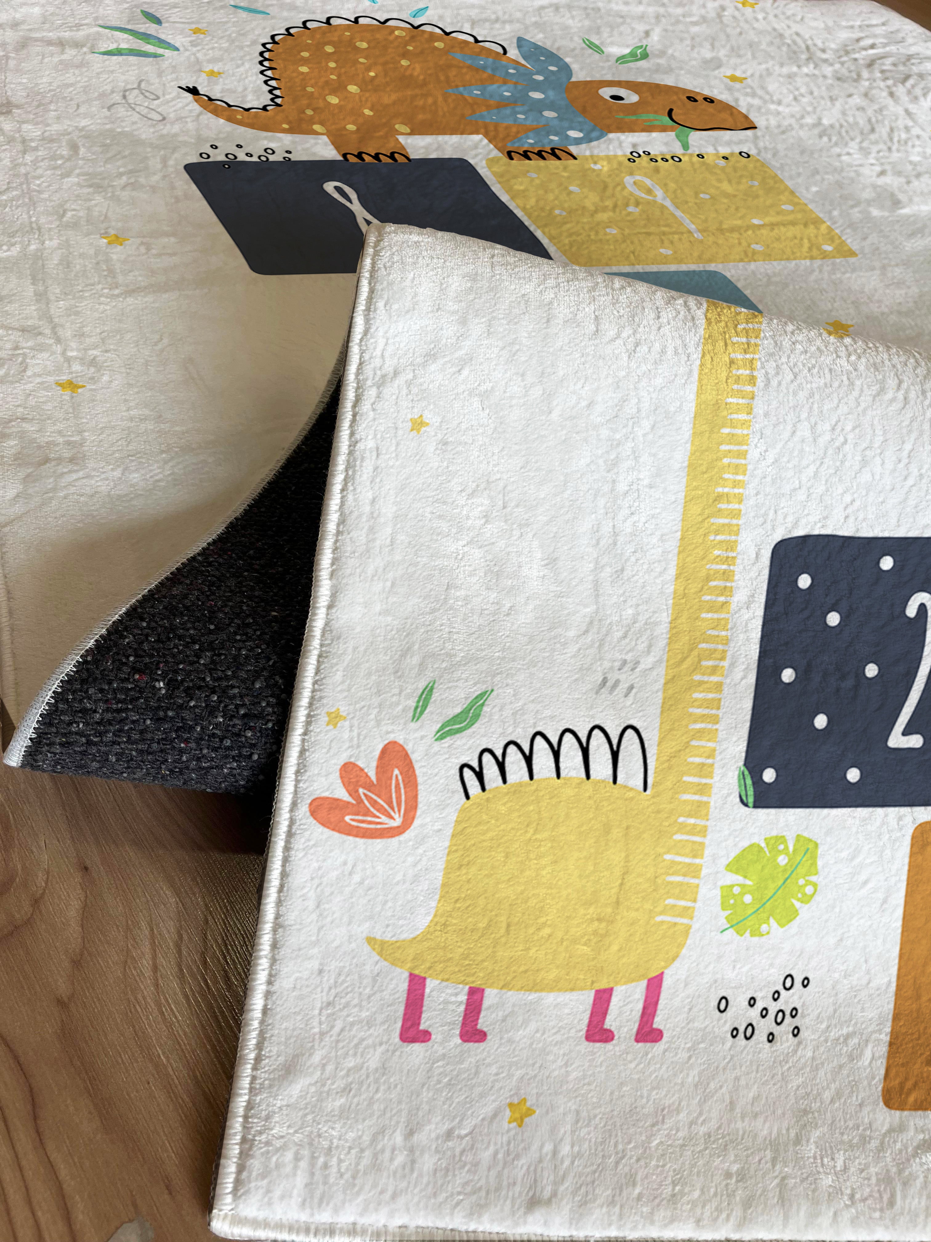 🦖🍃 Milbay Sevimli Dinozor Desenli Çocuk Halısı ile çocuk odalarına renk katıyoruz! 🎈 Bu halı, bambu kumaştan üretilmiş olup ev dekorasyonunda çocukların güvenli ve konforlu bir oyun alanı oluşturmayı amaçlıyor. 🏠 Dokuma taban özelliği sayesinde kayma riskini ortadan kaldırırken, dijital baskı merkezi kaymaz yapısı ile ev tekstili aramalarının popüler ürünü haline gelmekte. 🌟 Toptan baskı çocuk halısı seçenekleri, kişisel özel tasarım ve popüler arama tercihi olarak karşımıza çıkmaktadır. 🌈