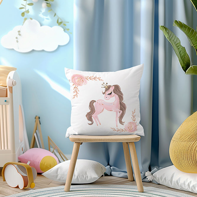 Milbay Unicorn Çiçekli Desenli Kırlent Kılıfı