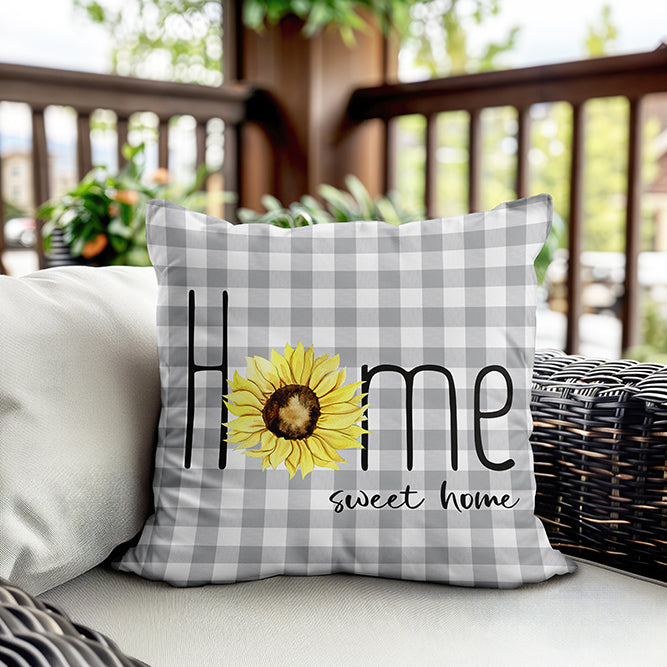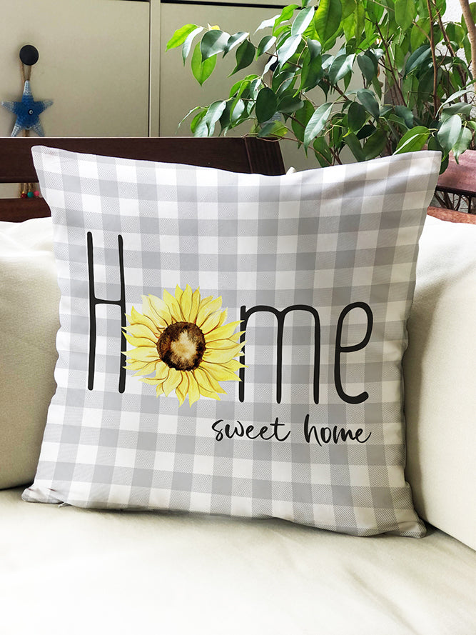 Milbay Ayçiçek Güneşi Kareli Desenli Kırlent Kılıfı