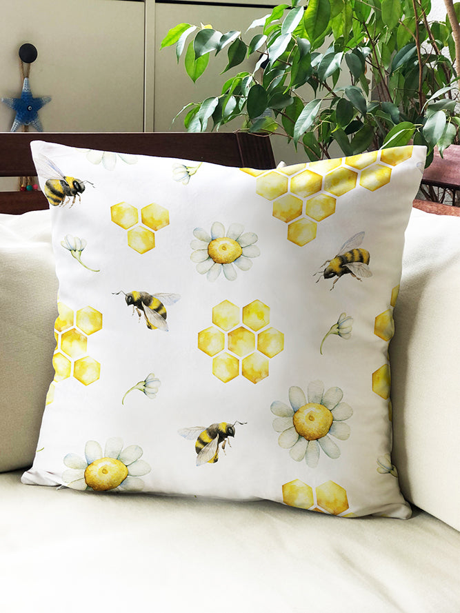 Milbay Arı Petek Çiçek Desenli Kırlent Kılıfı